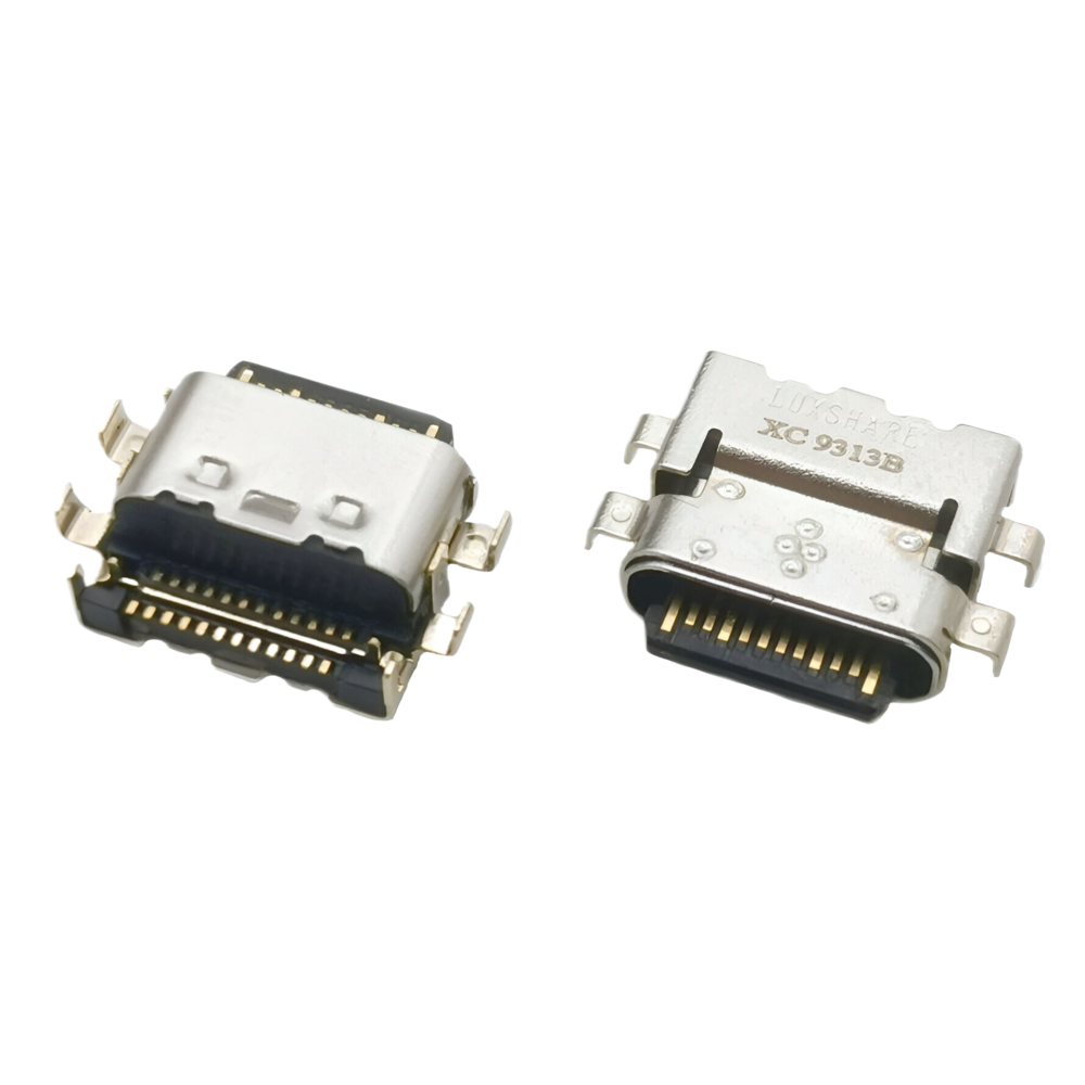 TYPE C 24P母座 板上雙貼SMT 舍片外漏 帶雙耳螺絲孔 CH=1.6MM L=7.55MM(華碩ROG2、3、5代游戲手機(jī)尾插)